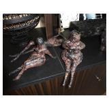 - Elaine Surnow (Michigan Artist, 20th c.) Voluptuous Ladies Dancing, Bronze Sculpture, 3 Reclining Ladies, Wax Molds, & Set of 3 Untitled Abstracts, Mixed Media/Acrylic on Canvas Wrapped Wood