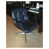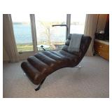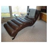- Mid-Century-style channeled leather “Wave” chaise w/ chrome legs by Lind