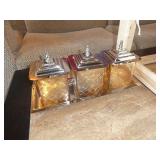 - Antique English 3 bottle Tantalus