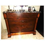 - Empire style 3 drawer mahogany chest with marble top
