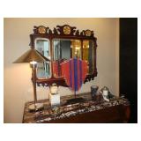 - Antique mahogany beveled triple mirror