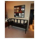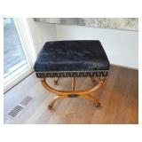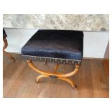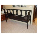 - Vintage black Biedermeier-style bench with calf hide upholstery