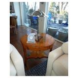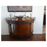 - Pair antique-style mahogany demilunes with rosewood banding