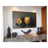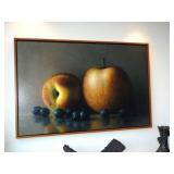 - James Del Grosso (American, 1941-2013) “Peach, Apple, & Blueberries”, Oil on Canvas, 32”x50”
