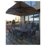 - Tropitone patio furniture - oval dining table with 6 armchairs and umbrella, round dining table with 5 armchairs, 3 chairs lounge chairs, and 2 swivel armchairs