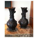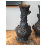 - Pair of vintage bronze vases with applied flowers