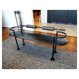 - Cy Mann “Mobius” Memphis-style black steel bench w/ leather-wrapped seat in the style of Ettore Sottsass