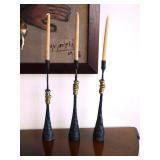 - 3 Mid Century-style chrome floor candlesticks