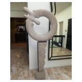 - Fritz Olsen (Michigan Artist, 20th c) Untitled Circle on Pedestal, Limestone/Steel Sculpture, 68”x30”