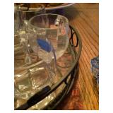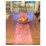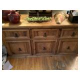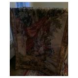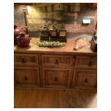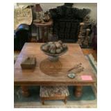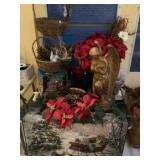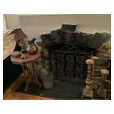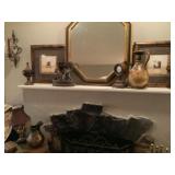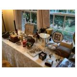 Eclectic Sale with lots of decorative items. The sale includes: Pine sideboard, leather sofa, rugs, contemporary tapestries, oak coffee table , many occasional tables, lamps, pine secretary desk, chinoiserie dresser and night stands, pine night stands, oak mission style dining room table and chairs, antique brass bed, pottery barn trunk , mahogany d.r. chairs, fire screen , stained glass window, wrought iron bistro set, outdoor swing, maple China closet , decorative pillows, curtains and rods, household items and much more. |