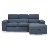 Contemporary Sectional Sofa Ferriday Collection by Homelegance Modern Style Blue Color 100% Polyester Cover Adjustable Headrests Under seat storage is revealed with the pull of a tab on the end chaise 8228BU Sectional with Pull-out Bed and Hidden Storage 98 x 65.5 x 39H