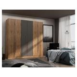 Product Dimensions: 82.48" L x 81.30" H x 22.76" D 2 drawers with 0.75 gliding mechanism Frame Material:MDF Finish:Natured and Textured Grey 4 fixed shelves Assembly Required Doors open 90 degrees Soft-close hinges on doors