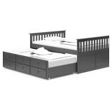 STYLE & FUNCTION: The Marco Island Full Captain's Bed features a pull-out twin trundle bed with three functioning spacious drawers to bring style and functionality to any bedroom. Made from solid hardwood and composites, it's built for years of enjoyment. VERSATILITY: The included full-size trundle bed with 3 functioning drawers can easily be wheeled in and out for maximum storage space. Offered in multiple rich, non-toxic finishes, the Marco Island Captain's Bed is the ultimate choice for any bedroom. EXTRA FULL BED: When space is at a premium, the Marco Island Captain's Bed can give you room to spare. Whether you're expecting company or making the most of a tight space, this trundle bed gives you an extra full bed without sacrificing square footage. ASSEMBLED DIMENSIONS: Length 78.1 inches x Width 59.5 inches x Height 35.5 inches Weight 206 pounds