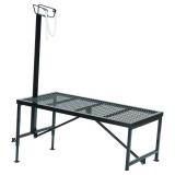 Durably constructed to handle long days of shearing and clipping, our black powder coated trimming stand is manufactured to handle larger animals like breeding sheep and goats. Easy to transport, this stand folds completely flat and features bolts to help keep the legs secure when carrying. The front and back legs easily fold via strong piano hinges that also help distribute the animal's weight evenly.