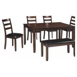 Langston Dark Dining Table and 6 Upholstered Chair Set, Brown