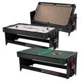 Official size table with 3/4" playfield and deluxe competition grade net and post set with easy clamp attachment Top is PVC laminated on both sides to make the table water resistant 2" x 1" solid birch wood apron provides extra stability for most intense play Sturdy birch solid wood legs with reinforced panel for rigid table support 2.5 inch leg levelers for even playing surface
