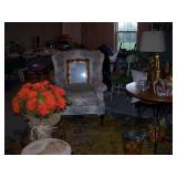 Contnets to include: King size bedroom set, queen bed, young adults bedroom set,3 piece wall unit, desks, wing chair, platform rocker, parsons chairs, ice cream able/chairs, several television sets, dvd's, cd's, lamps, wall decor, house hold and kitchen misc, gorgeous antique 9 x 12 area rug, other rugs, large Noritake Casual Gourmet dinnerware set, some ladies clothing, purses, costume jewelry, pillows, linens, newer snow blower, and more!