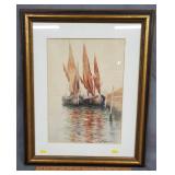 Sears Gallagher Boats at Pier Watercolor Painting |