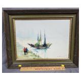 Leonard C. Lane "Tranquil Eve" Beach Oil Painting |