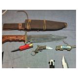1. 1965 Savage SA combined 22 & 20 ga. 2. 1939 Winchester semi-auto 22 ga. 3. Remington 700 308 Has a super sniper scope 4. Stoger 2000 3in mag. Semi-auto 12ga. Red dot site - 'all tricked out' 5. 9mm Carbine Hipoint w/5 mags 6. 45 cal SS AMT backup 7. Roger Super Blackhawk 44 mag. 10 1/2" barrel. Magnaport. Long eye relief pistol scope 8. misc ammo