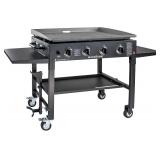 Blackstone 1554 Cooking 4 Burner Flat Top Gas Grill Propane Fuelled Restaurant Grade Professional Outdoor Griddle Station with Side Shelf, 36 Inches, Black Easy assembly, and quick ignition button. You may receive a rear grease or a front grease drain. Griddle top is easily removable Four independently controlled burners with low to high temperature settings provide versatile cooking options Four industrial strength, caster wheels (two are lockable) Solid stainless Steel burners for long life, and thick Rolled Steel surface for excellent heat retention and distribution NEW! MSRP: $299 No refunds after the item has left the building. |
