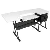 Sew Ready Eclipse Hobby Sewing Center Sewing Craft Table Sturdy Computer Desk with Drawers in Black/White, 13362 Dimensions - Overall dimensions: 60.25W x 23.75D x 29.25H Main top dimensions: 50.75W x 23.75D/folding side shelf: 9.5W x 23.75D Sewing Machine Table - Drop down platform dimensions: 23W x 10.75D/platform can adjust down to fit sewing machine or keyboard. The adjustable desk shelf matches the height of your sewing machine's base Lower storage shelf - Under desk storage shelf 32W x 9D/ Six floor levelers for uneven surfaces Capacity - Top maximum weight capacity: 100 lbs./Side shelf and adjustable platform weight capacity: 25 lbs. NEW! MSRP: $181 No refunds after the item has left the building. |
