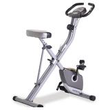Exerpeutic Folding Magnetic Upright Exercise Bike with Pulse, 31.0' L x 19.0' W x 46.0' H (1200) Assembly required Assembled dimensions: 31”L x 19”W x 46”H Folded Dimensions: 22” L x 20” W x 55.5” H Easily adjustable to fit users 5’3” to 6’1”. Supports up to 300 lbs. LCD Display: An easy to read large window (3.3”W x 1.5”H) LCD display that indicates distance, calories burned, time, speed, pulse and scan. Hand pulse sensors for monitoring your target heart rate Space Saving Design: This compact bike can be easily folded to half of the assembled size. Can be moved with the included transportation wheels. NEW! MSRP: $229 No refunds after the item has left the building. |