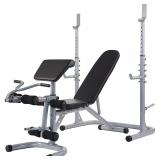 Sporzon Multifunctional Workout Station Adjustable Olympic Workout Bench with Squat Rack, Leg Extension, Preacher Curl, and Weight Storage, 800-Pound Capacity, Gray, Model Number: RS60 Adjustable - Both Olympic bench and squat rack are adjustable. Bench can be easily adjustable to incline, flat and decline chest press positions, while the rack can be adjusted to different heights Two-piece design - The Olympic bench and squat rack can be used together or separately or even moved out of the way, allowing you to perform squats and other exercises without obstruction Heavy duty - Made from high quality steel, designed to support a maximum user weight of 400 pounds and a maximum total weight of 800 pounds. Adjustable spotting arms prevent unnecessary injury while working out OPEN BOX, PLEASE COME PREVIEW! MSRP: $249 |