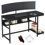 Rolanstar Computer Desk, 55" Home Office Desk, Study Writing Desk with Storage Shelves, Sturdy Table, Workstation, Stable Metal Frame, Black