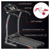 Sunny Health & Fitness Folding Treadmill with Device Holder, Shock Absorption and Incline Easy folding mechanism and soft drop system helps you unfold your treadmill safely and hands free Handrail controls allow you to control speed, start and stop. Pause function - Press the stop button once to stop the belt and pause your run while keeping your current data and running stats intact 9 Built-in workout programs with large LCD displays time, distance, speed, calories burned and pulse. Convenient smart phone/tablet holder is included to fit different devices