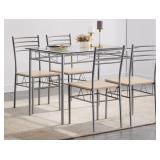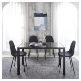 IDS Home Glass Table Top with Contemporary Fabric Upholstered Chairs with Metal Legs 5 Piece Kitchen Dining Room Dinette Set for 4, Black
