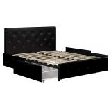 DHP Dakota Upholstered Faux Leather Platform Bed with Storage Drawers - Queen Size (Black)