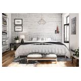 Novogratz Bushwick Metal Bed with Headboard and Footboard Modern Design King Size - White