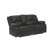 Calderwell Black Double Rec Loveseat w/Console Dual-sided recliner Pull tab reclining motion Corner-blocked frame with metal reinforced seats Attached cushions
