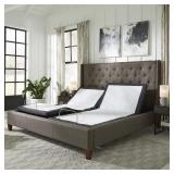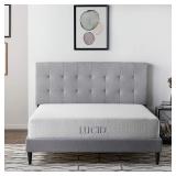LUCID Upholstered Bed with Square Tufted Headboard -Linen Inspired Fabric –Sturdy Wood Build –No Box Spring Required Platform, King, Stone The linen-inspired fabric finish with button less square tufting on the headboard provides a distinguished look The bed frame features thick side rails and wooden slats that eliminate the need for a bulky and cumbersome box spring The bed frame and all required parts are stored in the back of the headboard for easy shippping The only tool required is a Phillips-Head screwdriver to quickly and easily assemble this frame This item is NEW Please come Preview! No Refunds After Item Has left the Building. Verify the condition of your Item before you leave, Thanks. MSRP: $ 250