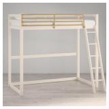Little Seeds Monarch Hill Haven Twin Metal Loft Bed, White & Gold Bars The scene is set for the perfect Friday night – Netflix is ready to roll with the latest must-see series, and the living room is finally the blissful sanctuary you always meant it to be now that your new teen’s favorite hangout has relocated to their new bedroom. Thanks to the Little Seeds Monarch Hill Haven Twin Metal Loft Bed, both you and your teen can have the spaces of your dreams without making any sacrifices to your design budget. This beautiful white loft bed with its clean lines and gold bed rail will be the sophisticated yet glamorous focal piece for your teen’s room that you’ve been searching for. The loft bed fits a standard twin mattress with a maximum height of 6 inches (sold separately), no box spring required. This item is NEW Please come Preview! No Refunds After Item Has left the Building. Verify the condition of your Item before you leave, Thanks. MSRP: $ 406 (103) |