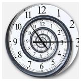 Time Sprial Analog Wall Clock 38'' Certainly not just for telling time, wall clocks are perfect for adding artful appeal to your kitchen wall or acting as a focal point above the living room mantel. Take this one for example: crafted from 100% solid aluminum, it showcases a highly reflective glossy finish and striking, swirling illusion design, creating a sleek and modern look. This oversize design arrives ready to hang: simply insert the included AAA battery. This item is NEW Please come Preview! No Refunds After Item Has left the Building. Verify the condition of your Item before you leave, Thanks. MSRP: $ 183