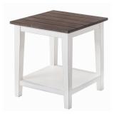 Simmons Casegoods Greige & White End Table Simmons Casegoods classic farmhouse end table featuring a tapered leg design, plank style top, and a functional storage shelf. Finished with a vintage brown color, and matte white painted base with rubbed edges.Vintage brown and matte white, slightly distressed finishes This item is NEW Please come Preview! No Refunds After Item Has left the Building. Verify the condition of your Item before you leave, Thanks. MSRP: $ 142