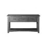 Rustic 55 in. Gray Standard Rectangle Wood Console Table with Drawers by Martin Svensson Home The Rustic Collection Console Table is a gorgeous rustic style console table. Constructed of solid pine in a Grey finish that offers just the right amount of distressing that can blend easily with other rustic, distressed, warehouse, farmhouse, or loft looks. The table features three (3) drawers for storage. The drawers may be removed and the bottom shelf is reversible to utilize the tables open cabinet option, transforming the console table to an open cabinet TV stand. The hardware is custom finished to complement the tables overall rustic and distressed look. A bottom shelf is offered for additional storage and complemented by curved bottom base moldings. Assembled product dimensions: 55 in. W x 16 in. D x 30 in. H. Product materials: Solid Wood - New Zealand Pine. Easy assembly - Top and drawer unit is pre-assembled, only needing to attach the legs and bottom shelf. Grey Finish This item is NEW Please come Preview! No Refunds After Item Has left the Building. Verify the condition of your Item before you leave, Thanks. MSRP: $ 320