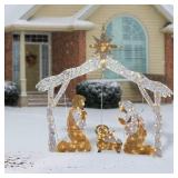 National Tree Company 55" Nativity Scene with Clear Lights This set, which includes kneeling Joseph and Mary figures, baby Jesus and shining star above enclosing structure, is made with a metal frame and fabric material that is strong and durable to provide many years of enjoyment. Set is pre-lit with 150 clear mini lights that make this decoration sparkle and shine. This holiday trimming can be displayed in indoor or outdoor locations.Measures 55" high x 51" wide. Pre-lit with 150 UL listed clear lights. For indoor or outdoor This item is NEW Please come Preview! No Refunds After Item Has left the Building. Verify the condition of your Item before you leave, Thanks. MSRP: $66