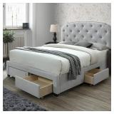 DG Casa Argo Tufted Upholstered Panel Storage Bed, Queen in Platinum Fabric Queen size panel bed frame in platinum polyester blend fabric with diamond tufted nailhead trim headboard and 4 storage drawers to conveniently store items such as bed linen, clothes, shoes, or books Conveniently ships in 3 packages - Solid and sturdy wood frame - Durable polyester blend fabric upholstery Box spring and mattress required; not included - Assembly required Overall dimensions with headboard measures 84 by 64 by 52 inches (LxWxH). View product description for additional product dimensions and information This item is INCOMPLETE BOX 2/3, FOOTBOARD AND SIDE RAIL Please come Preview! No Refunds. Thanks. MSRP: $ 450