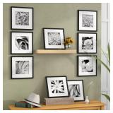 Estinnes 9 Piece Wood Picture Frame Set from The Twillery Co.™ Turn a wide-open wall into an at-home gallery with this nine-piece picture frame set. Measuring 12" square, each frame is crafted from wood, covered with glass, and paired with a removable white mat to accommodate an 8" square image. Thanks to its neutral black finish, this set can blend easily with a variety of color palettes and aesthetics. Wall-mounting hardware is included, so this set is ready to hang as soon as it reaches your door. 12'' H x 12'' W x 15.75'' D This item is NEW Please come Preview! No Refunds After Item Has left the Building. Verify the condition of your Item before you leave, Thanks. MSRP: $72