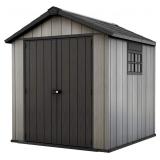 Keter Oakland 7.5x7 Foot Large Resin Outdoor Shed with Customizable Walls for Lawn Mower and Bike Storage, 7.5 x 7, Grey DIMENSIONS: External: 90. 2 in W x 88 in. D x 95. 2 in. H / internal: 79 in. W x 79 in D x 90. 5 in. H IDEAL SIZE: 326. 86 cubic foot storage capacity DURABLE: Super rugged and durable with a double wall structure, tongue in groove construction, and steel reinforcement DUOTECH: The innovative Duotech walls give it a gorgeous weathered wooden texture with all the durability of resin LIGHT & AIRY: Skylight & window to let in natural light & vented for air circulation EASY TO MODIFY: Unique Duotech walls are easily paintable & drillable to easily customize your space In opened packaging. Item is damaged. See at preview. LARGE ITEM(S) MUST BE PICKED UP ON THE SCHEDULED NIGHT OF PICKUP. WE WILL NOT MOVE OR HOLD IT. NO EXCEPTIONS. Retail price $1,221.08 (14) |