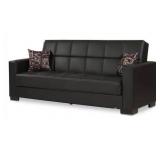 Armada Black PU Leather Sofa Bed Decorative Pillows Are included. Comfortably seats three and can conveniently fold out into a bed for an adult. Durable and long lasting framework with metal and innerspring construction. Built to last. Twisting and bending resistant reinforced frame construction. Rust and corrosion resistant galvanized mechanism and fitting parts. Steel innerspring coils with wrapped foam fill. Sit, Store, Sleep concept. NEW! In original packaging. NO REFUNDS once the item has left the pickup location. LARGE ITEM(S) MUST BE PICKED UP ON THE SCHEDULED NIGHT OF PICKUP. WE WILL NOT MOVE OR HOLD IT. NO EXCEPTIONS. Retail price $509.99 |