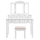 VASAGLE Vanity Set, Tri-Folding Necklace Hooked Mirror, 7 Drawers, 6 Organizers Makeup Dressing Table with Cushioned Stool Easy Assembly, for Women White URDT06M Adequate storage capacity: 7 Drawers and 2 makeup brush holders organize all your beauty Secret and jewellery with ease, thanks to the large table surface (13 3/8"), even with table top drawers sitting on top, there is still more than enough room on the table 3 panel mirror: tri-folding mirror offers a full view so you can make sure you look great from every angle, besides, 4 additional Necklace hooks behind each side-mirror Considered Vanity size: Vanity table 42 1/2''l x 18 1/2''W x 59 5/8''H (108 x 47 x 151. 5cm), Vanity stool, This adult Height Vanity Set offers enough Leg space under the table, even swivel chair can get in and out easily Easy to assemble: This vanity table set is almost completely assembled, simply add the legs and the mirror to the Vanity and it's ok for use NEW! In original packaging. NO REFUNDS once the item has left the pickup location. LARGE ITEM(S) MUST BE PICKED UP ON THE SCHEDULED NIGHT OF PICKUP. WE WILL NOT MOVE OR HOLD IT. NO EXCEPTIONS. Retail price $320.01 |