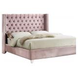 Meridian Furniture Aiden Collection Modern Contemporary Velvet Upholstered Bed with Deep Button Tufting, Solid Wood Frame, and Custom Chrome Legs, Queen, Pink Strength and beauty is guaranteed with a solid wood frame and stainless steel legs Assembly required Product dimensions – 72” W x 86” D x 56” H Footboard height – 14” Weight – 107 lbs. Pink Plush Velvet Wing Design Fits eastern mattress size dimensions Queen size NEW! In original packaging. NO REFUNDS once the item has left the pickup location. LARGE ITEM(S) MUST BE PICKED UP ON THE SCHEDULED NIGHT OF PICKUP. WE WILL NOT MOVE OR HOLD IT. NO EXCEPTIONS. Retail price $533.00 |