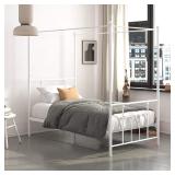 DHP Manila Metal Canopy Bed Frame - Twin Size (White) Modern design with Victorian style finial detailing. Perfect addition to your master bedroom, guest bedroom or teen's bedroom. Product dimensions: 77.5”W x 41”W x 71.5”H Weight limit: 250 lbs. Weight: 46.5 lbs. Metal slats offer support and durability. Metal slat base allows air to pass freely beneath your bed, keeping your mattress fresher longer Accommodates a standard size mattress. Sold separately. In opened packaging. See at preview. LARGE ITEM(S) MUST BE PICKED UP ON THE SCHEDULED NIGHT OF PICKUP. WE WILL NOT MOVE OR HOLD IT. NO EXCEPTIONS. Retail price $161.99 |