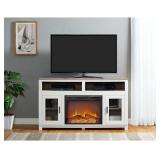 Ameriwood Home Carver Electric Fireplace TV Stand for TVs up to 60" Wide, White The simple but functional Ameriwood Home Carver Electric Fireplace TV Stand is a great way to give your living area an instant upgrade with its 23” electric fireplace insert Fireplace dimensions – 54.1” W x 19.8” D x 31.3” H Weight – 121 lbs. Assembly needed – 2 adults recommended Weight limit – 60” flat panel TV up to 95 lbs. Covered heating area – 400 Sq. Ft. The 23” electric fireplace insert has a remote control, 4 touch panel settings and exclusive AltraFlame built in reflectors for a realistic flame effect on the logs White and medium brown laminated particleboard and MDF pair perfectly with the silver handles and tempered clear glass doors to create an elegant look In opened packaging. See at preview. LARGE ITEM(S) MUST BE PICKED UP ON THE SCHEDULED NIGHT OF PICKUP. WE WILL NOT MOVE OR HOLD IT. NO EXCEPTIONS. Retail price $372.14 |
