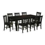 East West Furniture Logan 9 Piece Slat Back Dining Table Set Chair Dimensions: 18W x 17D x 36H in. Table Dimensions: 66 - 84L x 42W x 30H in. Solid rubberwood construction High-shine black finish 18-in. butterfly extension leaf beneath the tabletop NEW! Comes complete in 6 brand new boxes! MSRP: $1,005 No refunds after the item has left the building.(30) |