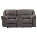 Emerald Home Allyn Power Console Loveseat in Gray U7127-21-03 Gray finish Solid Wood, Plywood Black metal pull finish Desert sand faux leather with white-luggage stitching Dual recliners Faux leather upholstery USB charging station NEW! MSRP: $675 No refunds after the item has left the building.(28) |